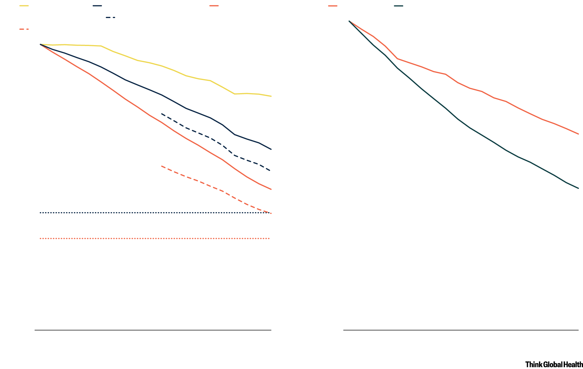 Mortality rate relative to 2000, %